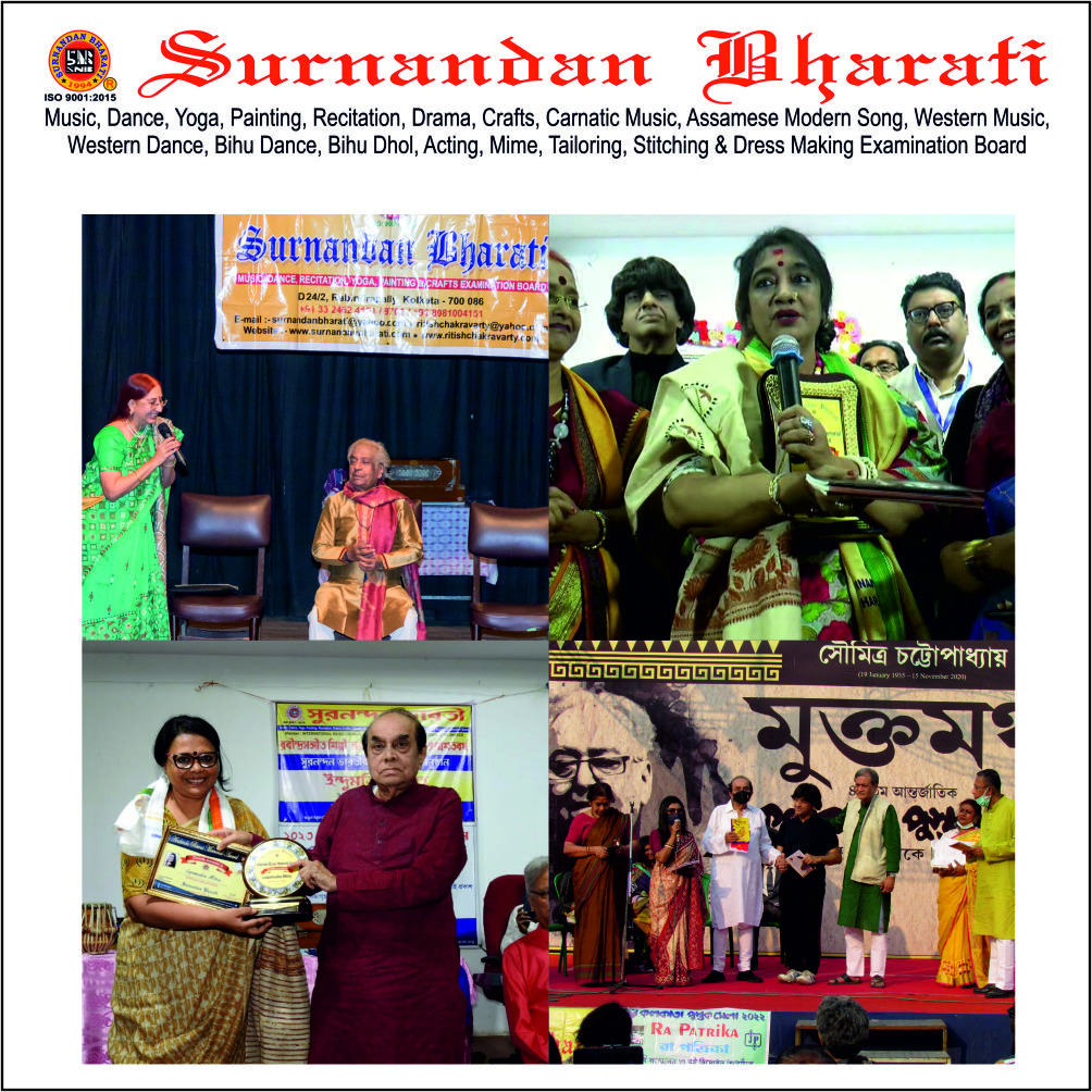 Surnandan Bharati is an All India Examination Board for Music, Dance, Yoga, Painting, Recitation, Drama, Crafts, Beautician, Embroidery, Carnatic Music, Western Music, and Dance. Founded in 1994 under the West Bengal Societies Registration Act, 1961, Surnandan Bharati has grown into a nationally and internationally recognized cultural institution. The organization has affiliates across numerous Indian states including: Tripura, Assam, Meghalaya, Arunachal Pradesh, Nagaland, Bihar, Jharkhand, Maharashtra, Madhya Pradesh, Chhattisgarh, Andhra Pradesh, Kerala, Karnataka, Rajasthan, Goa, and West Bengal. Active international communication and outreach is also ongoing.